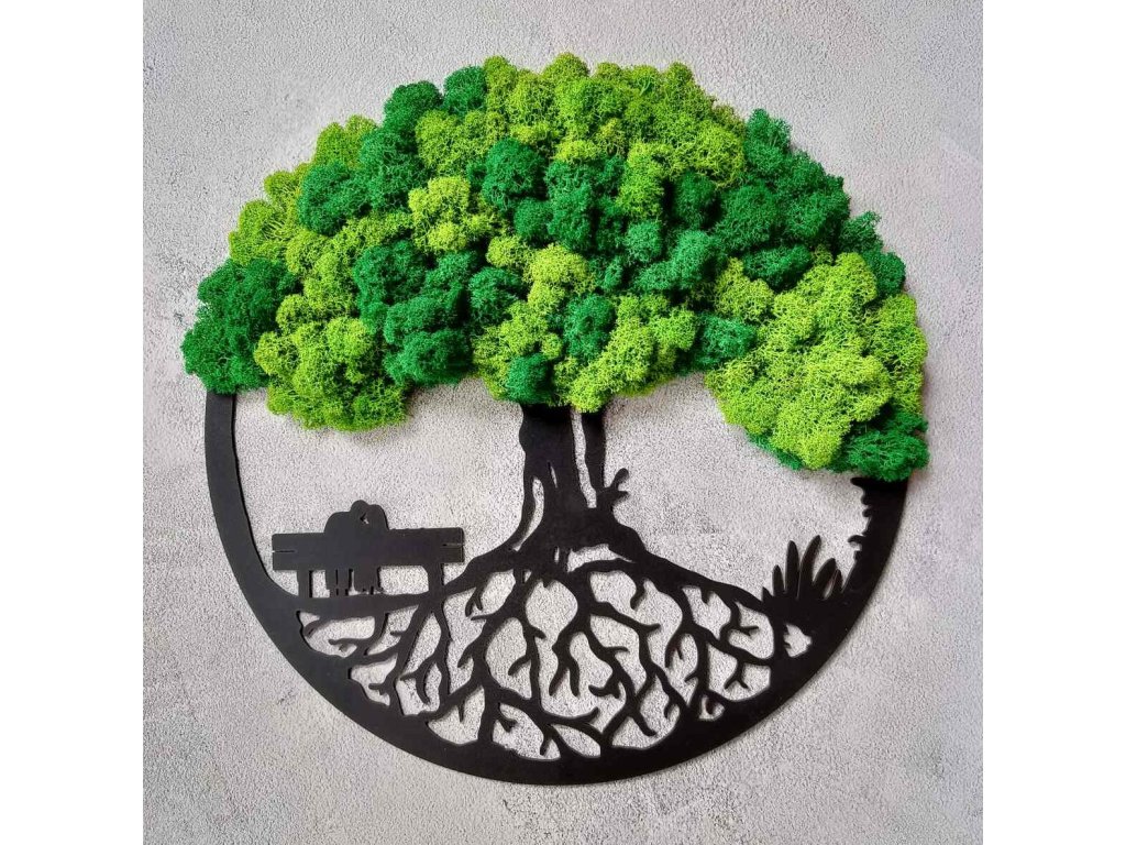 Obraz strom dřevěný dub, s párem na lavičce je skvělý nápad na dárek pro pár nebo manželství. Ideální na výročí, jubileum nebo narozeniny. Zobrazení objímajícího se páru sedícího na lavičce připomíná blízkost ve vztahu. Strom je pak univerzálním symbolem síly a trvanlivosti. Pro vytvoření našeho rukodělného díla používáme lišejník sobí, pocházející ze Skandinávie.