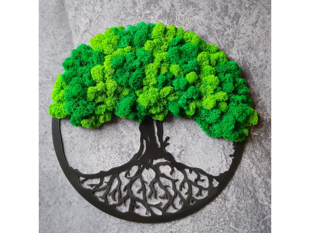 Strom Dub v Kruhu – eleganckie dekorace s přírodním lišejníkem sobím, ideální jako dárek. Záruka trvanlivosti na léta.